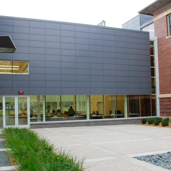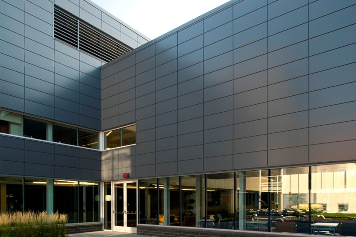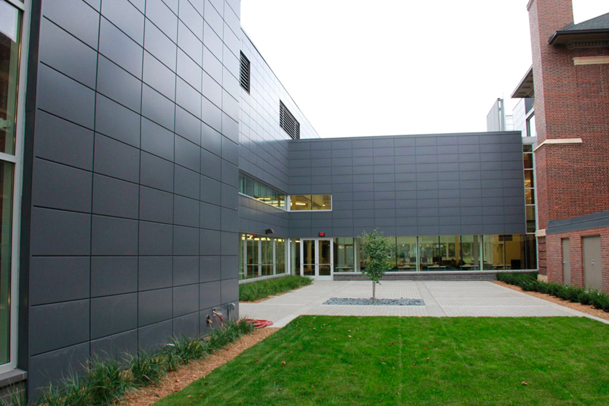 MG McGrath worked with McGough Construction and MSR Design to fabricate and install over 10,000 square feet of Dri-Design metal cladding for the exterior of the new Weitz Center for Creativity. Also provided and installed by our team was 450 square feet of louvers, horizontal hat channels, insulation and Z-furring.